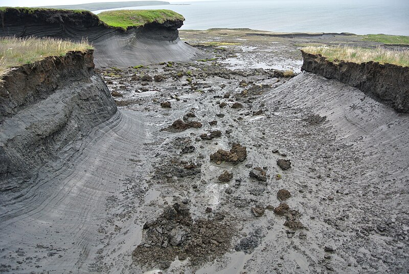 A photo of thawing permafrost. From Boris Radosavljevic (posted to flickr, hosted on Wikimedia Commons) licensed under CC BY 2.0.